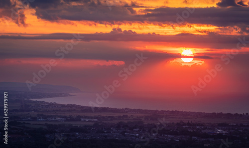Fototapeta premium Brilliant September sunrise from Butts Brow looking east along the coast to...