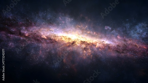 Fototapeta premium Brilliant spiral galaxy structure illuminates deep space with countless stars and cosmic dust