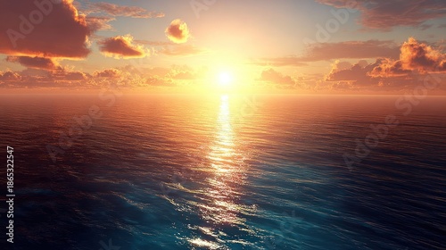 © mlion, Fototapeta premium Brilliant sunlight illuminates vast ocean waves during a dramatic warm-toned sunset