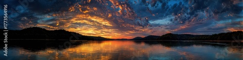 © Alona, Fototapeta premium Brilliant Sunset on Cumberland River in Tennessee. A Serene Nature Background