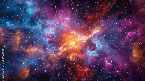 Naklejka premium Brilliant supernova with explosive colors and a cosmic backdrop, ideal for a...