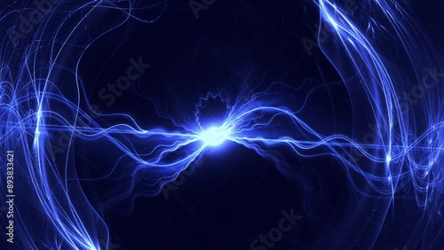 Obraz premium brilliante energievoll leuchtende kugelförmige Lichteffekte - Licht, abstrakt, dynamisch, Technologie, Wissenschaft, blau, lila, violett, schwarz
