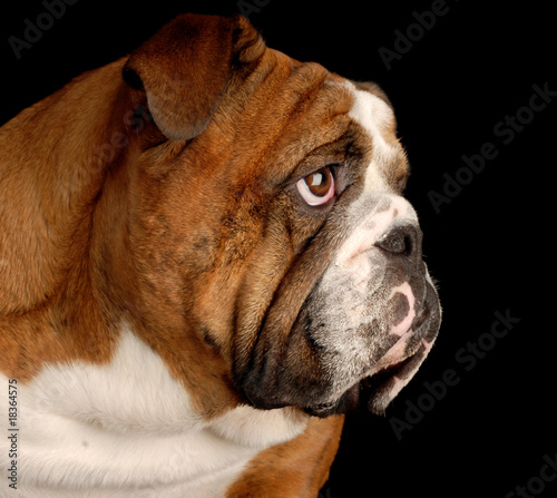 Obraz premium brindle english bulldog portrait on black background