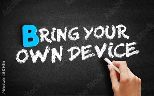 © dizain, Fototapeta premium Bring your own device text on blackboard
