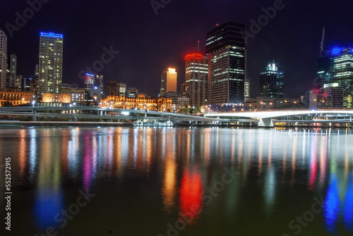 © jovannig, Fototapeta premium Brisbane night city view with skyscrapers reflections on city river - Australia