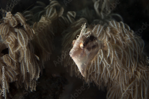 Obraz premium Bristle-tail filefish (Acreichthys tomentosus). Underwater macro photography...