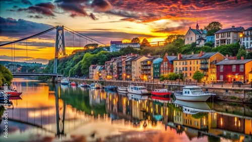© Arnada, Fototapeta premium Bristol Harbourside Architecture, England: Iconic Cityscape at Sunset