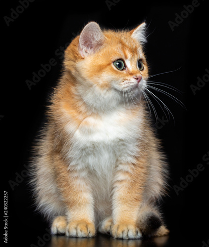 © TrapezaStudio, Obraz premium British cat isolated on Black Background in studio