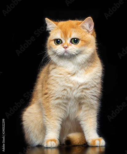 © TrapezaStudio, Obraz premium British cat isolated on Black Background in studio