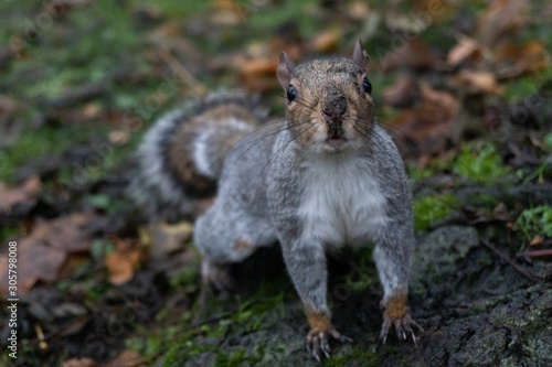 © Yunok, Obraz premium British Curious Grey Squirrel Looking At Camera