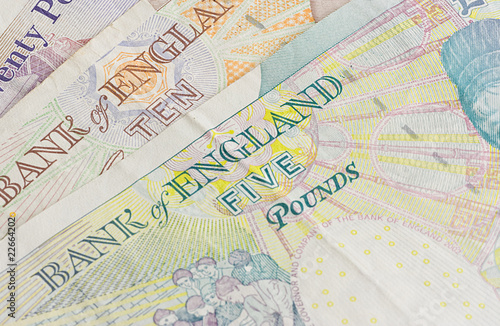 © Lynne Carpenter, Naklejka premium British five ten and twenty pound notes