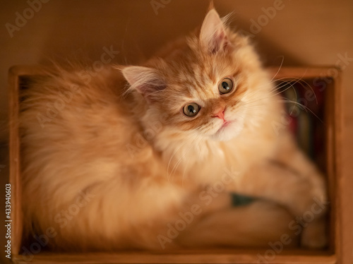 © nexusseven, Fototapeta premium British long hair tubby kitten in a box