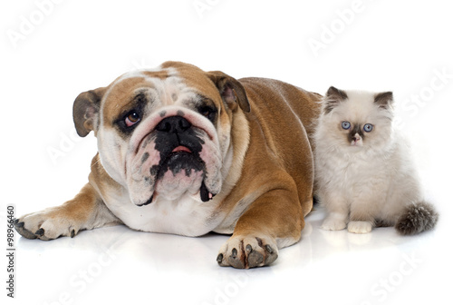 Obraz premium british longhair kitten and english bulldog