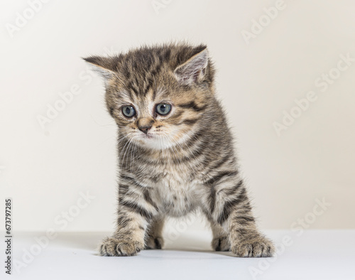 Fototapeta premium british longhair kitten on a white paper background