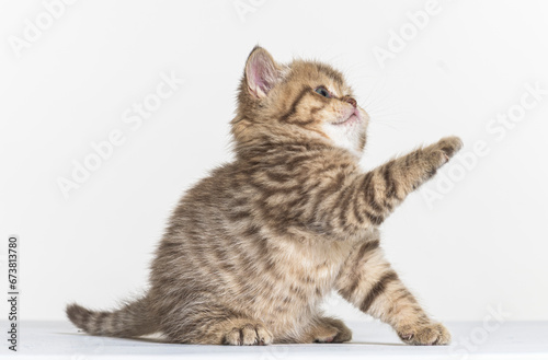 Fototapeta premium british longhair kitten on a white paper background