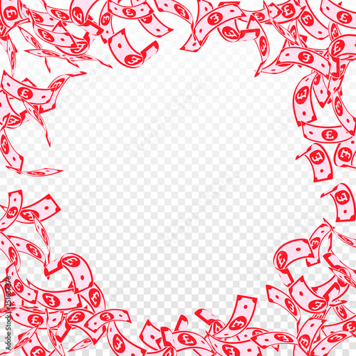 Obraz premium British pound notes falling. Floating GBP bills on