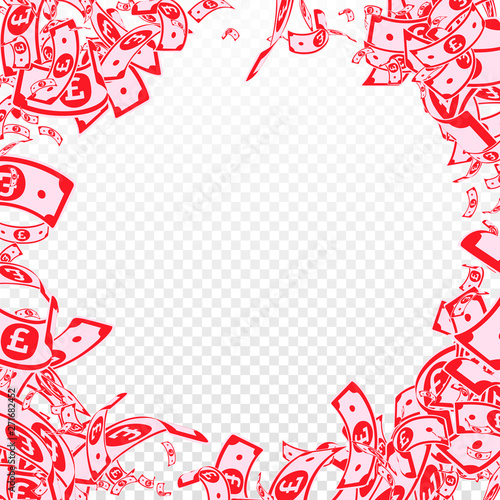 Obraz premium British pound notes falling. Messy GBP bills on tr