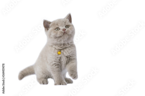 Obraz premium British Shorthair lilac cat, cute and beautiful kitten, playful action on a white background, full view looking to the top
