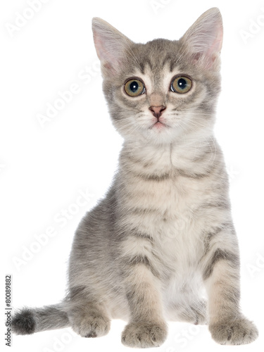 Fototapeta premium British shorthair tabby kitten sitting isolated
