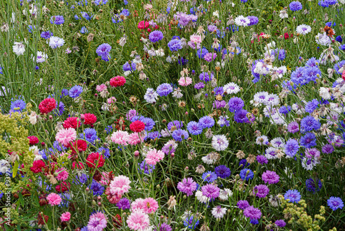 © Pluto119, Naklejka premium British Wildflower Meadow Confetti Plants Colourful Wallpaper Background Image