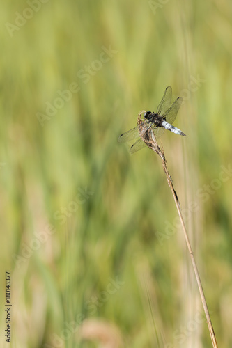 © Mps197, Fototapeta premium Broad-bodied chaser dragonfly on a dried reed