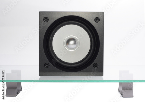 © Valuykin S., Fototapeta premium broadband speaker on the glass table.