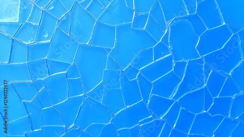 © Tark, Obraz premium Broken blue glass surface texture. Background for banner, backdrop or texture. Generative AI