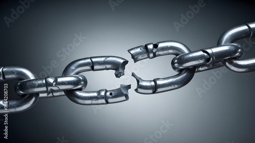 © BASHIR, Obraz premium Broken chain link represents weakness, failure, or vulnerability concept