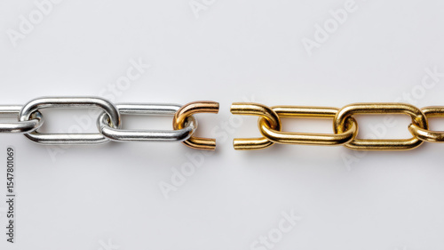 © koranis, Obraz premium Broken chain links, silver and gold, separated