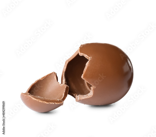 Obraz premium Broken chocolate Easter egg isolated on white background