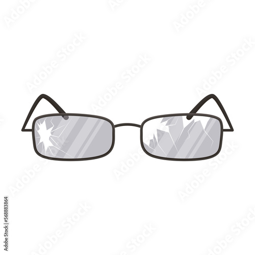 © Bro Vector, Fototapeta premium Broken eyeglasses vector illustration. Cartoon drawing of glasses with broken lens isolated on white background. Accessories, repair service concept