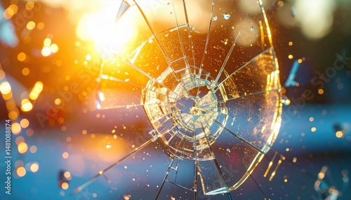 © Mandan, Fototapeta premium Broken Glass With Sunlight Flares