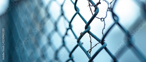 Naklejka premium Broken Mesh Fence Close-up - Sharp Colors & Depth
