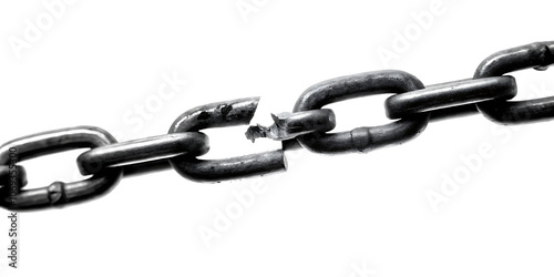 Obraz premium Broken metal chain isolated on a white background.AI GENERATED