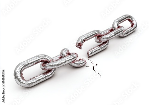 © Sanrobone, Obraz premium Broken metal chain on white background