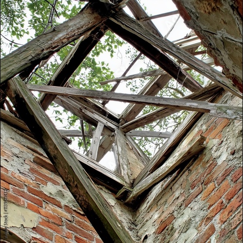 Obraz premium broken roof in the house