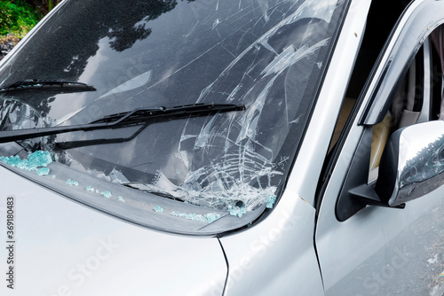 © Leo Lintang, Obraz premium Broken white car because of the crash accident