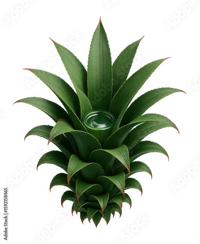 © OMD, Fototapeta premium Bromeliad plant with rosette of stiff, spiky leaves and central water reservoir