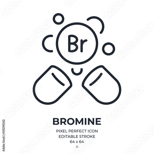Naklejka premium Bromine food supplement editable stroke outline icon isolated on white background flat vector illustration. Pixel perfect. 64 x 64.