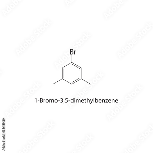 © Basstock, Fototapeta premium 1-Bromo-3,5-dimethylbenzene skeletal structure. Brominated Alkylbenzene compound schematic illustration. Simple diagram, chemical formula.