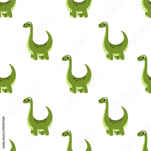 Obraz premium Brontosaurus seamless pattern. Dinosaur. Funny dino. Vector, flat