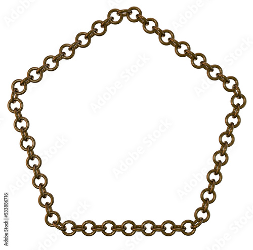 Obraz premium Bronze chain. 3D rendering illustration. Pentagon frame.