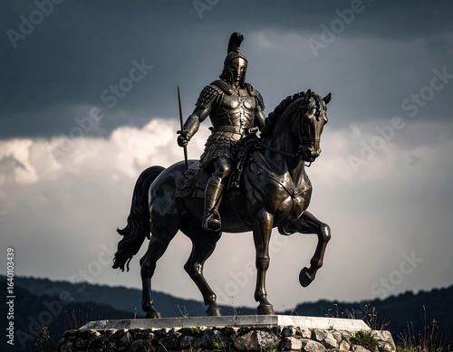 © Tunggal, Obraz premium Bronze equestrian statue, dramatic sky