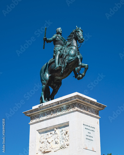 © OutrexMX, Fototapeta premium Bronze Equestrian Statue Under a Clear Blue Sky