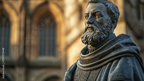 © KOOLAIDMAN100X, Fototapeta premium Bronze statue against building facade