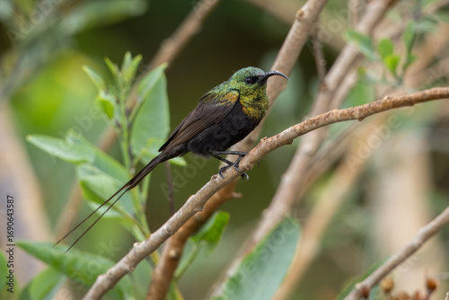 Fototapeta premium Bronze sunbird perched on a branch