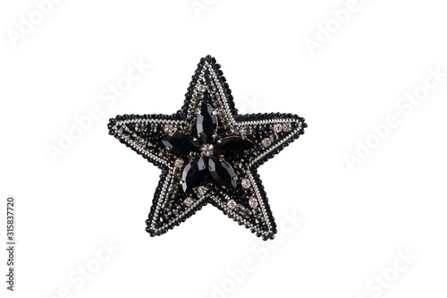 Obraz premium Brooch made of handmade colored beads on the background