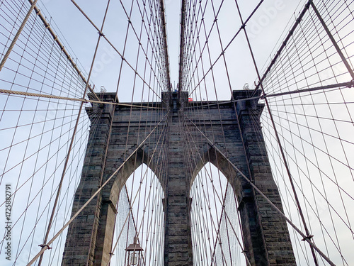 Fototapeta premium Brooklin bridge, New York City view, US. Manhattan skyline, financial center