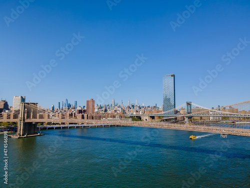 Naklejka premium Brooklyn and Manhattan Bridges with Manhattan New York City skyscrapers city over Hudson River.
