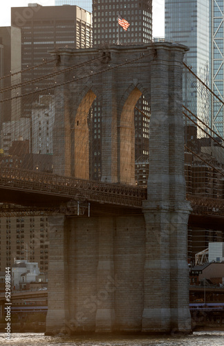 © zxvisual, Naklejka premium Brooklyn Bridge and American Flag